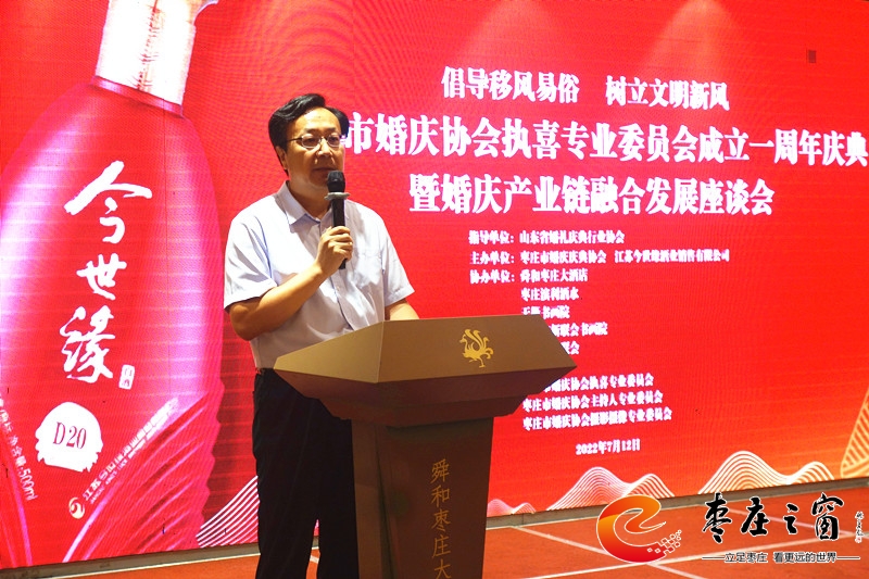 棗莊市婚慶慶典協(xié)會(huì)會(huì)長張霖介紹說:為了更好的服務(wù)社會(huì),棗莊市婚慶慶典協(xié)會(huì)于2021年5月成立了由江蘇今世緣酒業(yè)冠名的執(zhí)喜專業(yè)委員會(huì),宗旨是引導(dǎo)廣大群眾破舊立新,婚事新辦,舉辦簡約、時(shí)尚、浪漫的新時(shí)代婚禮。同時(shí),專委會(huì)還聘請(qǐng)了12位有熱心、有愛心的婚俗民俗專家為執(zhí)喜專業(yè)委員會(huì)擔(dān)任顧問。