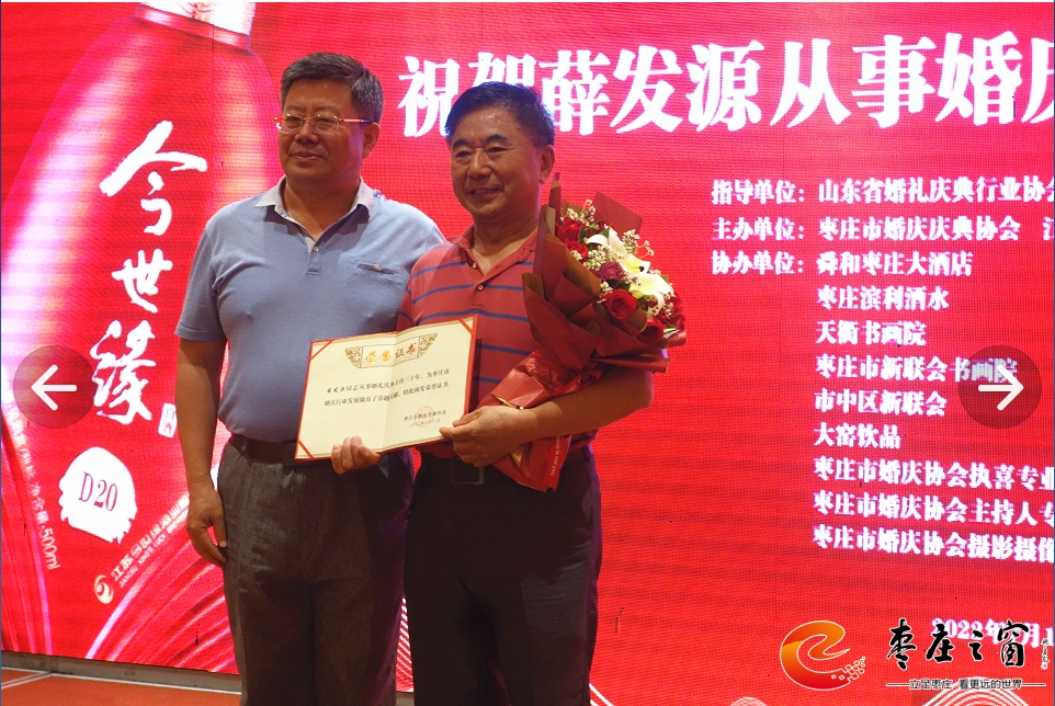 在專委會(huì)成立一周年之際,為了更好地開展工作,棗莊市婚慶慶典協(xié)會(huì)特舉辦專委會(huì)成立1周年慶典暨婚慶產(chǎn)業(yè)鏈融合發(fā)展座談會(huì)。原棗莊市兩新組織黨工委副書記、市民政局一級(jí)調(diào)研員叢方佐在座談會(huì)上致賀詞,山東省婚禮慶典行業(yè)協(xié)會(huì)、棗莊市婚慶慶典協(xié)會(huì)、江蘇今世緣酒業(yè)銷售有限公司、舜和棗莊大酒店、棗莊濱利酒水、天衢書畫院、棗莊市新聯(lián)會(huì)書畫院、市中區(qū)新聯(lián)會(huì)、大窯飲品、棗莊市婚慶協(xié)會(huì)執(zhí)喜專業(yè)委員會(huì)、棗莊市婚慶協(xié)會(huì)主持人專業(yè)委員會(huì)、棗莊市婚慶協(xié)會(huì)攝影攝像專業(yè)委員會(huì)等代表在座談會(huì)發(fā)言,對(duì)棗莊婚慶行業(yè)與相關(guān)婚慶產(chǎn)業(yè)的融合發(fā)展提出建議和期望。周年慶還給從事婚慶行業(yè)三十周年的薛發(fā)源同志頒發(fā)卓越成就獎(jiǎng),同時(shí),專委會(huì)專家顧問團(tuán)新聘任7位同志為執(zhí)喜專業(yè)委員會(huì)顧問,進(jìn)一步提高了專委會(huì)的專業(yè)水平,在今后為廣大群眾提供更好的專業(yè)化服務(wù)。(楊仁成 攝影)